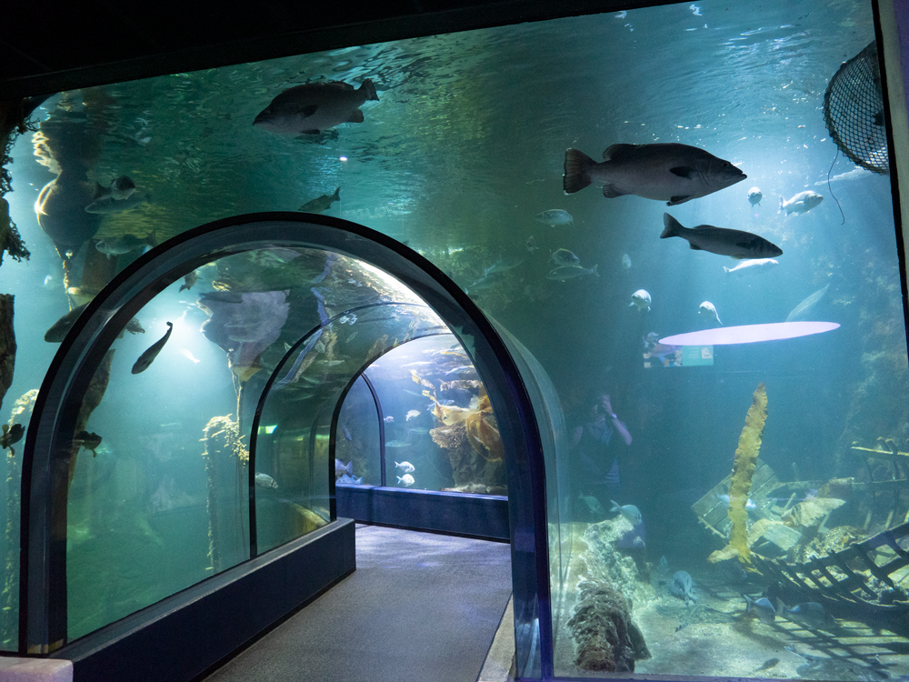 Plus loin, on traverse l’aquarium par le tunnel. De part et d’autre, nous découvrons les divers poissons qui nous regardent 😉