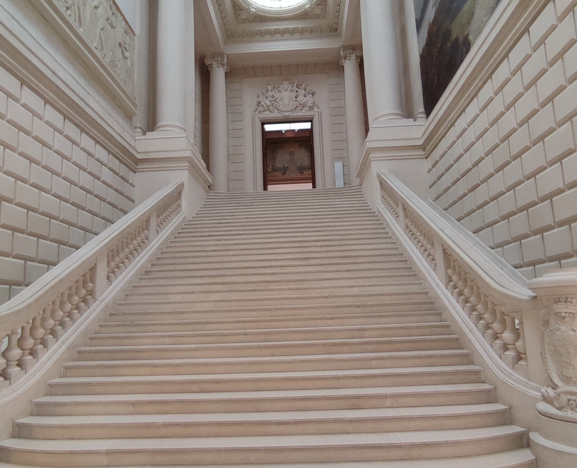 Le bùtiment est énorme avec ses hauteurs de plafonds et ses énormes escaliers.