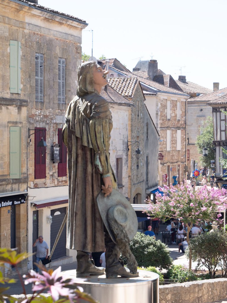Cyrano de Bergerac, Ă©crivain libertin trĂŽne sur la placette Ă Bergerac. Il a, entre autre, inspirĂ© Edmond Rostand. Qui ne connait pas la tirade du nez đ!?