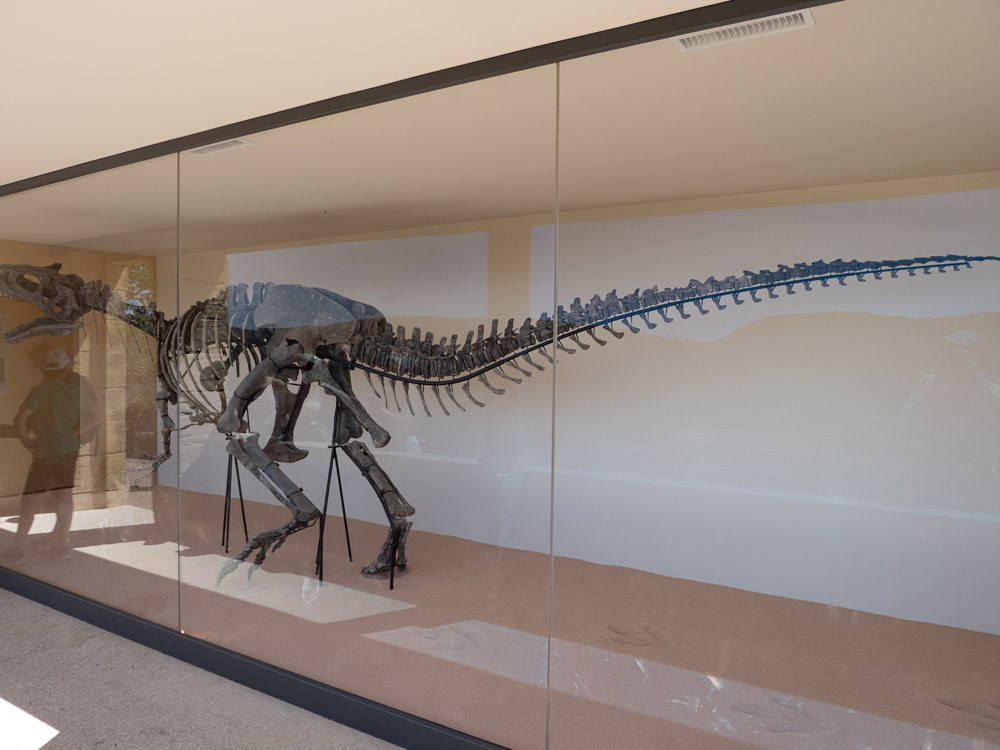 AprĂšs ĂȘtre arrivĂ©s Ă l’entrĂ©e du site, dĂ©jĂ bien contents avec la pente qui n’en finit plus đ. Nous commençons notre visite avec le dinosaure Kan, 7.5 m de long đ±