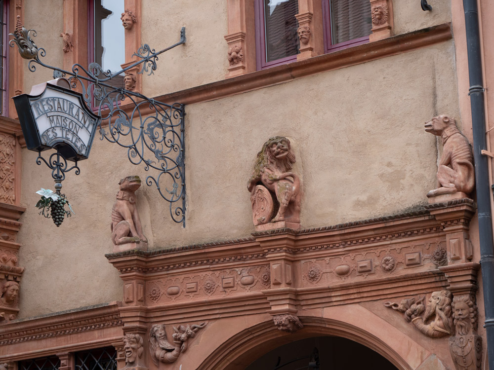 Passant par la maison des tĂȘtes qui doit son nom aux 105 tĂȘtes qui dĂ©corent la demeure.
