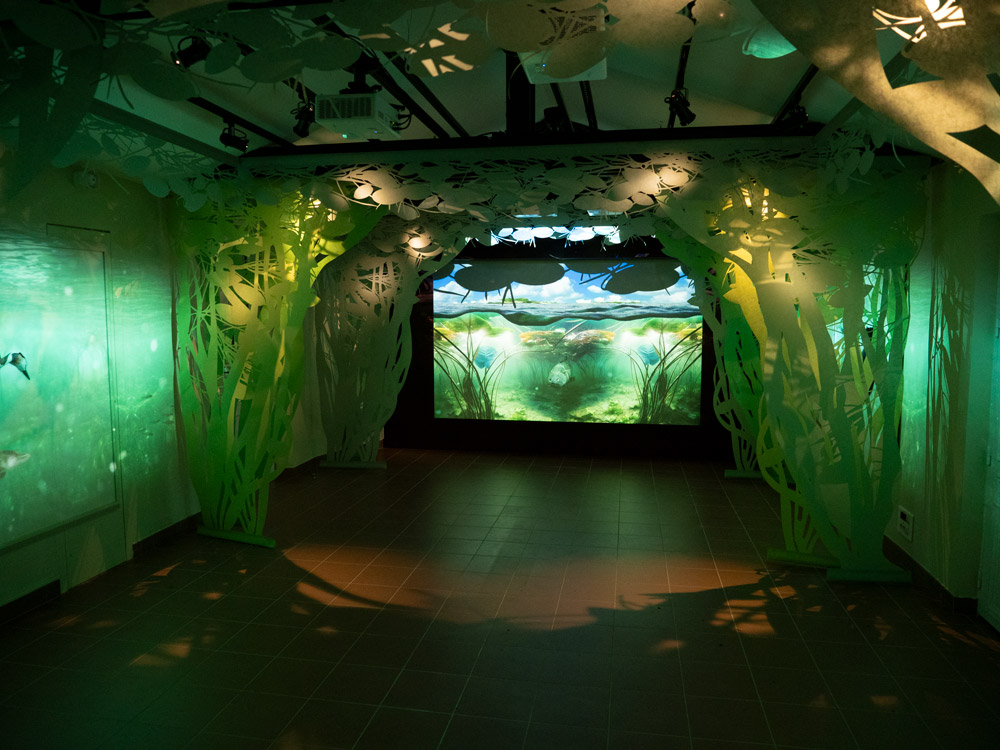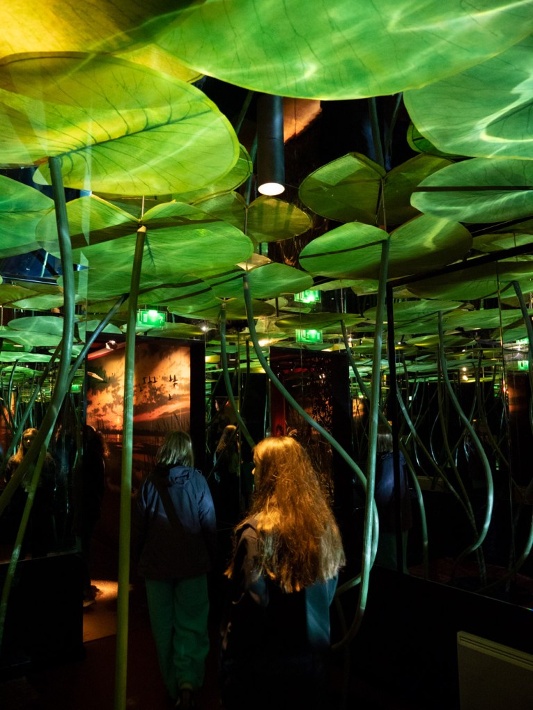 Avant d’arriver Ă la terrasse, nous traversons diverses salles avec une scĂ©nographie en rapport avec la nature.