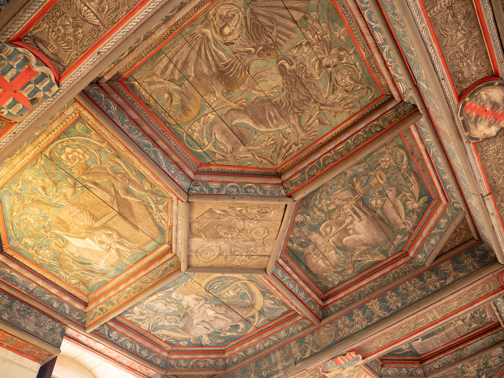 Nous commençons la visite avec le plafond peint à la demande de Jean Bourré comprenant 24 caissons 😅