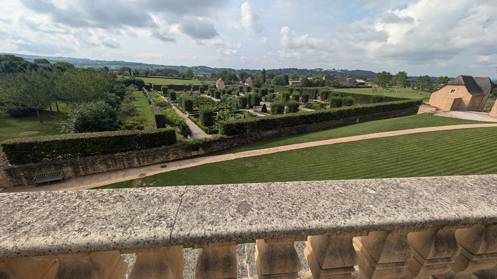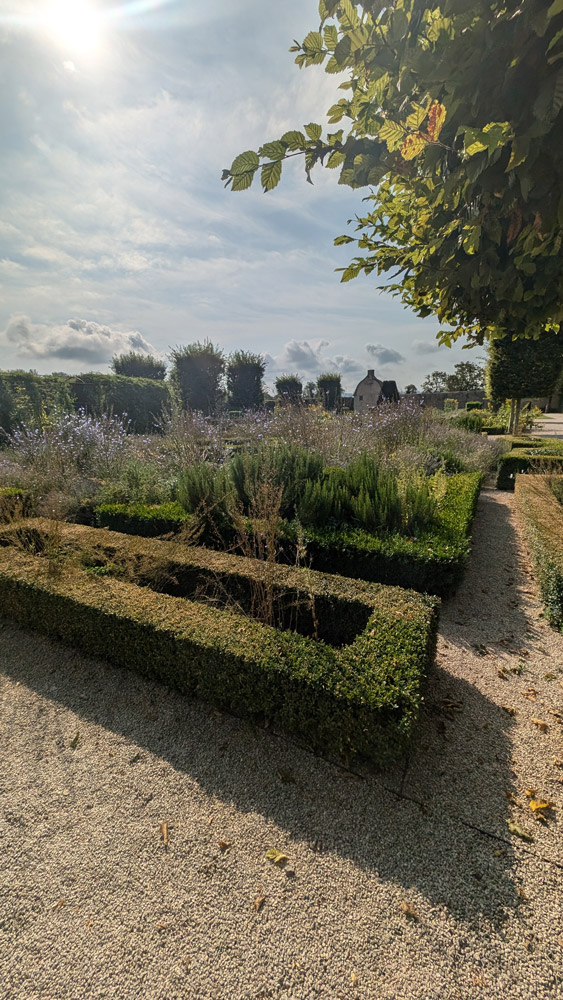 En attendant la visite guidée du chùteau, nous commençons notre balade avec les jardins géométriques.