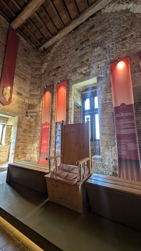 Ici, il nâexiste quâune seule façon de visiter le donjon : en suivant la visite guidĂ©e. Et câest notre guide, passionnĂ© et intarissable, qui nous a ouvert les portes de ce tĂ©moin du Moyen Ăge. Avec sa voix claire et son enthousiasme communicatif, il donnait lâimpression que chaque pierre Ă©tait une vieille connaissance. Entre deux explications sur lâarchitecture dĂ©fensive, il glissait de petites histoires dont la lĂ©gende d’un Ă©cuyer qui fut dĂ©capitĂ© par le seigneur de Bours aprĂšs avoir dĂ©couvert la liaison avec son Ă©pouse.